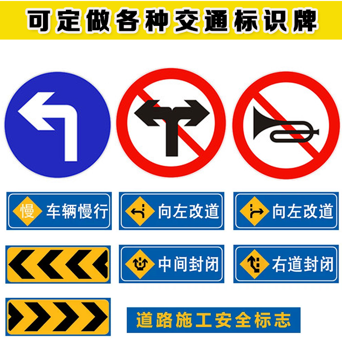 (2)禁令標志的顏色為白底、紅圈、紅杠、黑圖案,圖案壓杠。其中解除禁超車、解除限制速度標志為白底、黑圈、黑杠、黑圖案,圖案壓杠。形狀為圓形,讓路標志為頂角向下的等邊三角形。